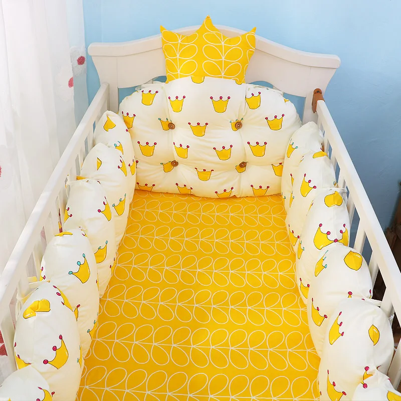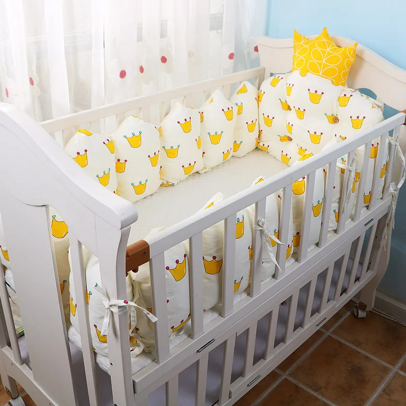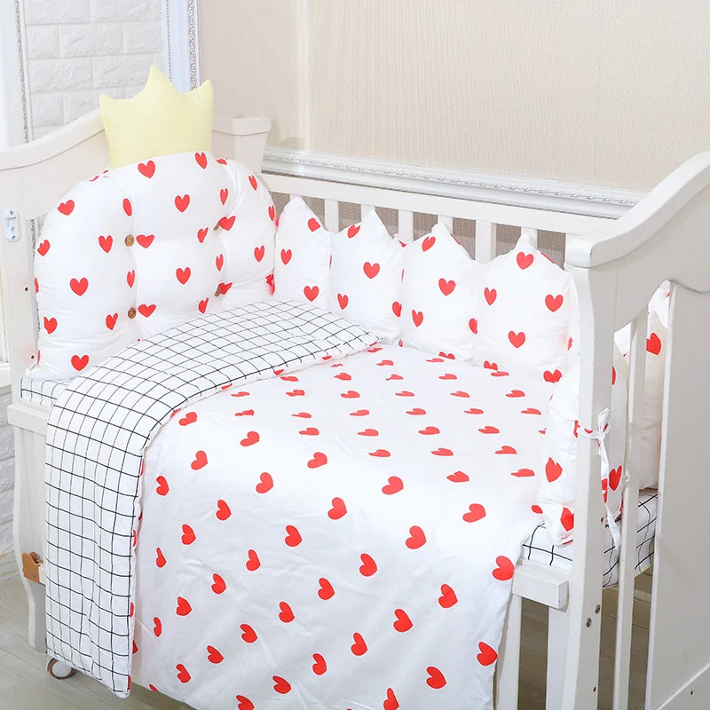 100% Cotton Crib Bed Linen Kit,Crown Design Baby Crib Bedding Set,Baby Bedding Set Includes Bumpers+Pillow+Quilt+Mattress cover